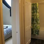 В ванной комнате с душем и ванной предоставляются полотенца и банные полотенца.